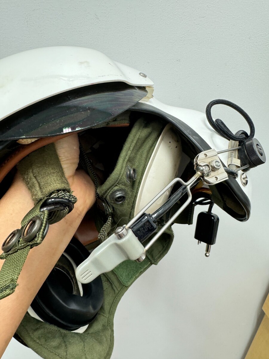 Original 1984 USAF Helicopter Pilot Gentex SPH-4 Flight Helmet With Mic Visor. Flight helmet with dark visor, Clear Visor, microphone, speakers.