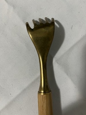 Vintage Brass Hand Shaped Wood Back Scratcher Handle 19" Massager Wooden KeyRing added to cart.