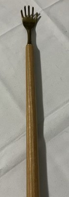 Vintage Brass Hand Shaped Wood Back Scratcher Handle 19" Massager Wooden KeyRing.