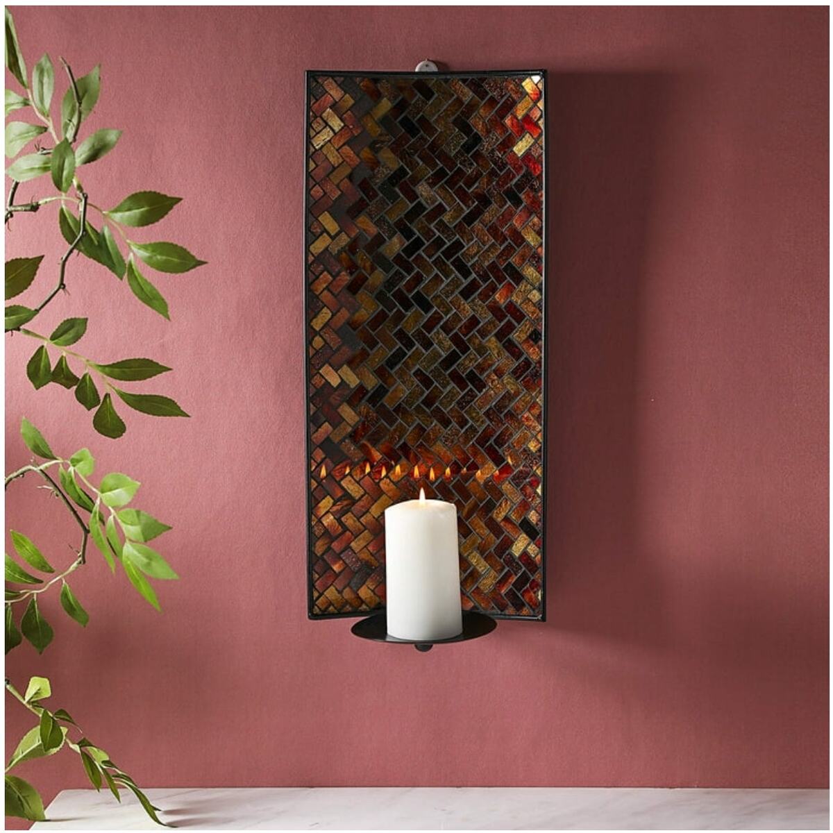 WHOLE HOUSEWARES Vintage Mosaic Glass Candle Holder Decorative Metal Wall Sconce