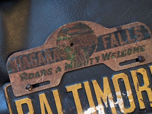 Este adorno de matrícula vintage presenta las iconicas Cataratas del Niagara en todo su esplendor, lo que lo convierte en un complemento perfecto para cualquier coleccion de recuerdos de automoviles o transporte. El adorno para platos fue fabricado en los Estados Unidos y es una gran representacion de la historia estadounidense. Quedaría genial en cualquier automovil, ademas de exhibirlo en su hogar. Este adorno para matrícula es imprescindible para los fanaticos de Nueva York y Baltimore, ya que cuenta con una placa de tocador de Baltimore. El tope esta en mal estado.