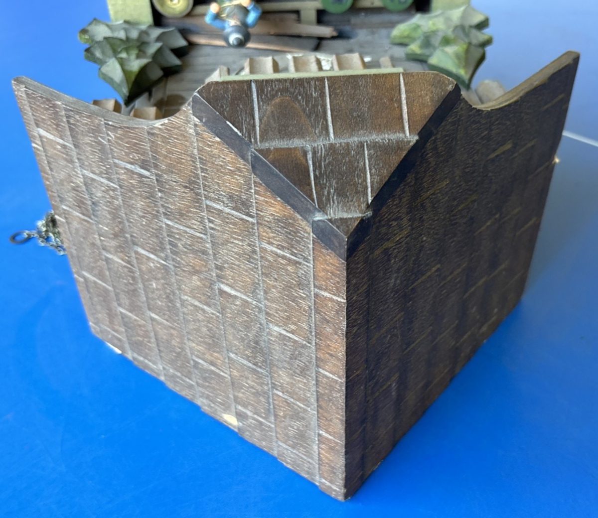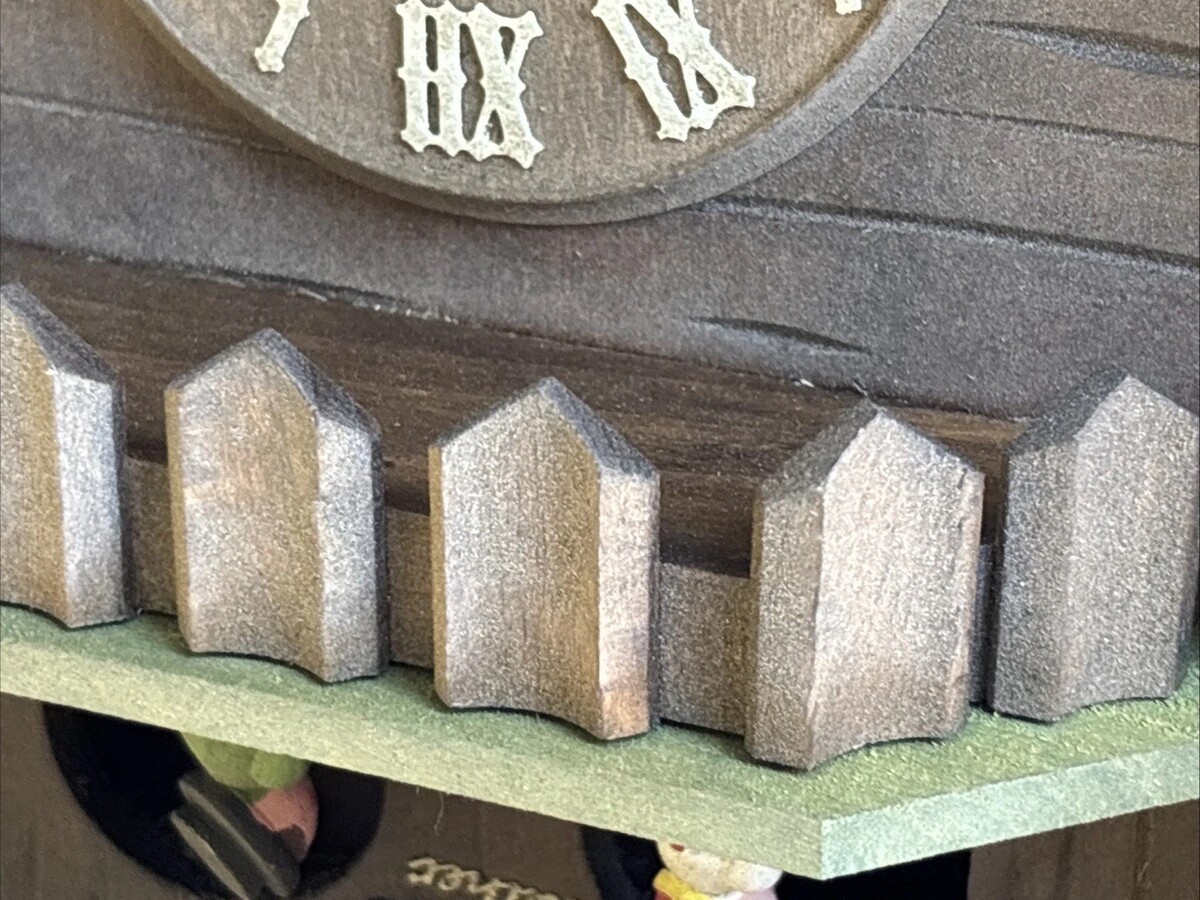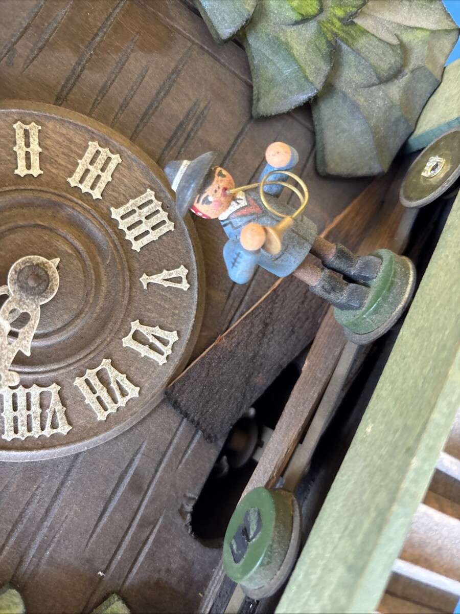 This Vintage CUENDET Swiss Movement German Cuckoo Clock is a unique and charming piece with a Multicolor design and Roman Numerals. The clock features a Mechanical movement, wooden frame, and a Black Forest style. With its musical theme and original features, this late 20th-century clock from Germany is perfect for any room in need of a touch of nostalgia and traditional elegance. Ideal for collectors or those looking for a special piece to add to their decor. Sold as is for parts or repairs
