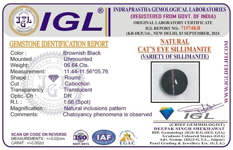 Katzenauge / Ceylonesisches Katzenauge - 6,64 Karat - IGL Zertifiziert