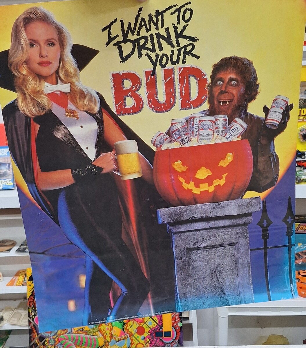 1990 Budweiser Light Dry "I Want To Drink Your Bud" Wolfman Halloween Poster