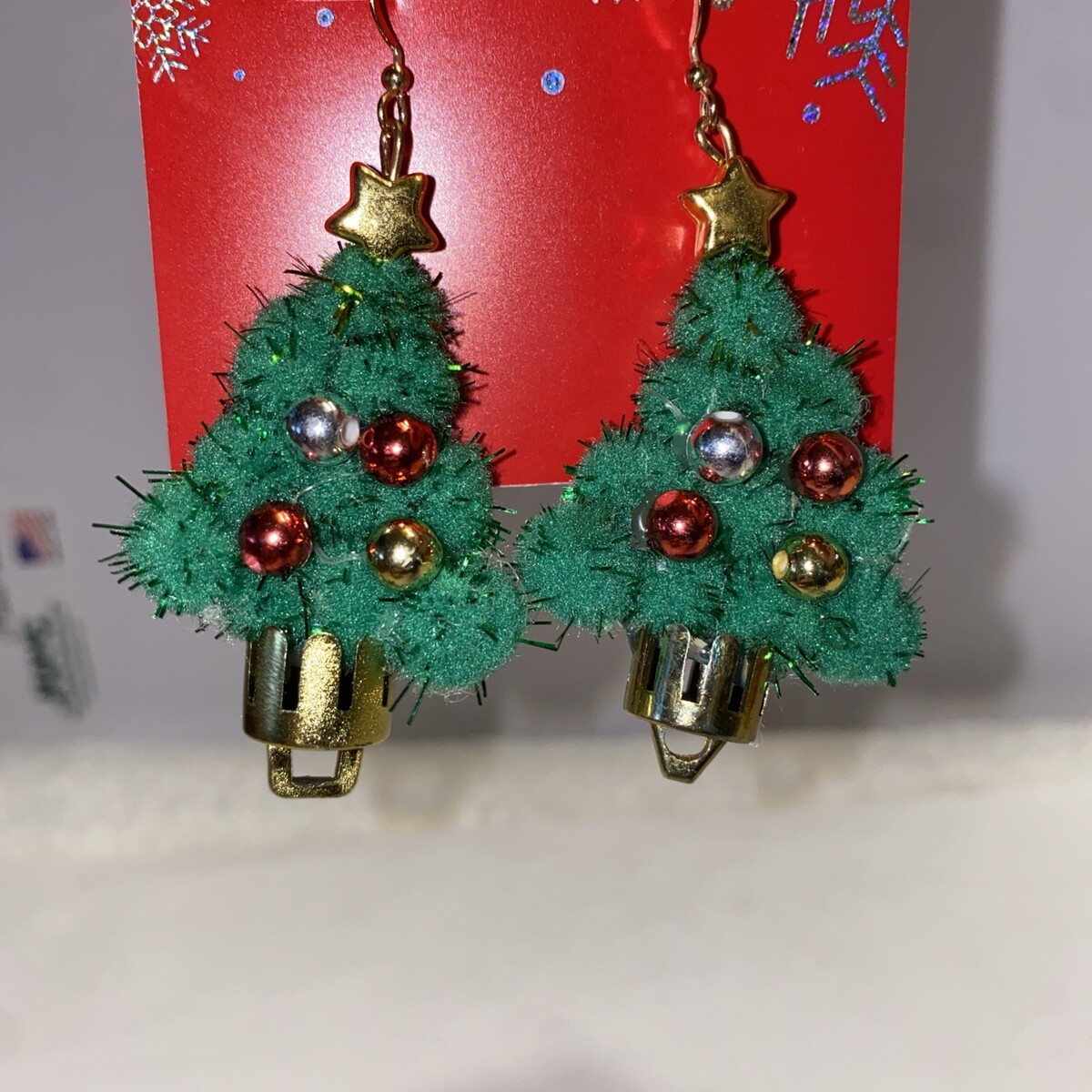 Vintage Decorated Christmas Tree Dangly Earrings (SHIPS IN 24 HRS)