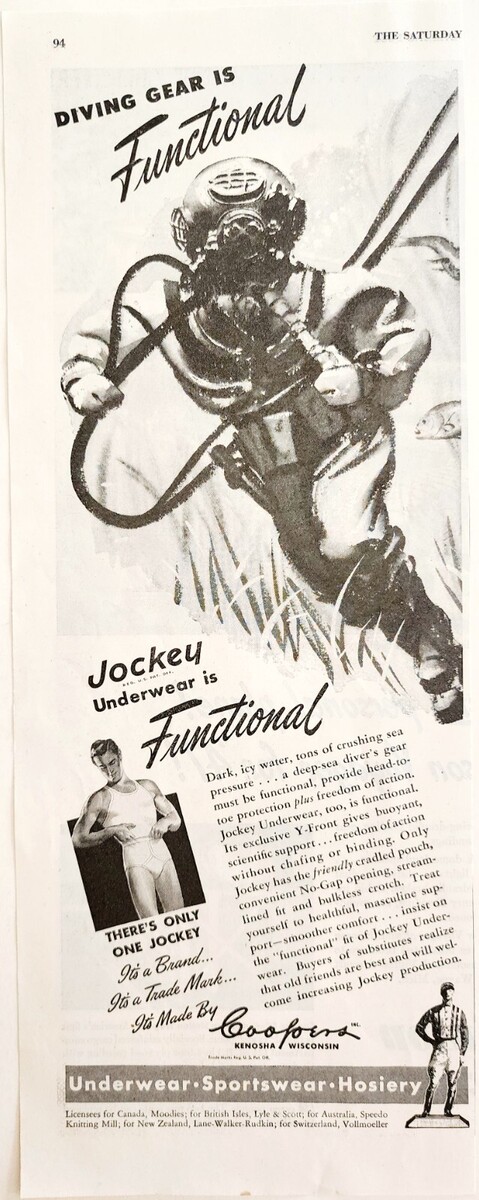 1947 Coopers Jockey Underwear Advertisement Deep Sea Diver Kenosha DWWW4