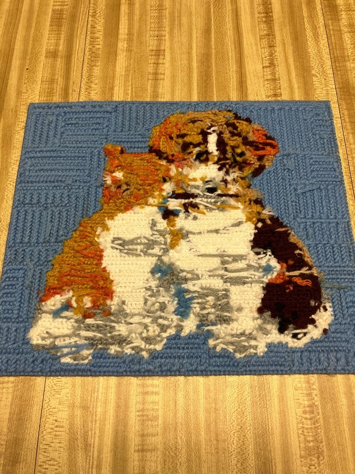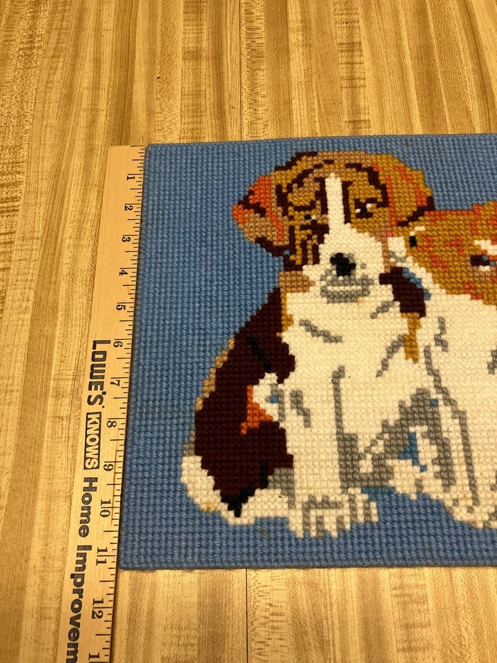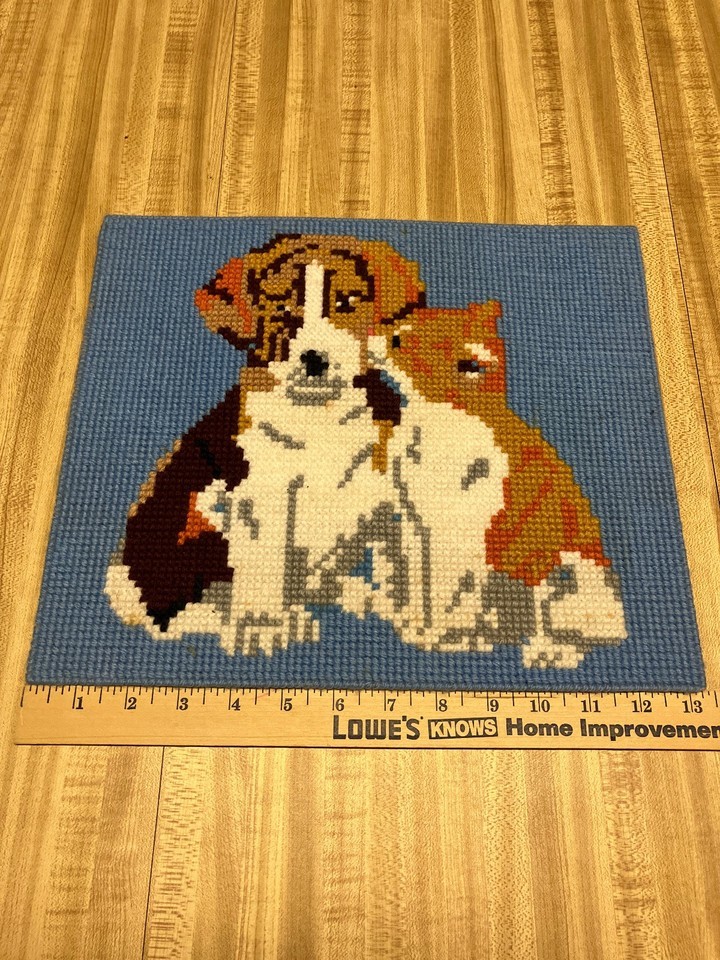 Plastic canvas vintage needle work picture kitten and puppy