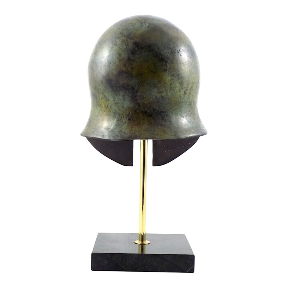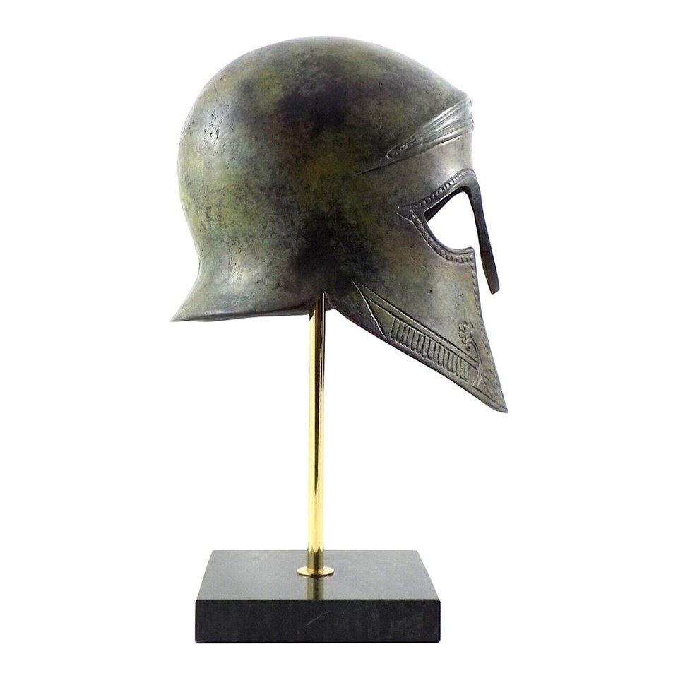Große antike griechische korinthische Echtbronze Helm auf natürlichem Marmorsockel Metall Kunst Statue Skulptur Handarbeit in Griechenland
