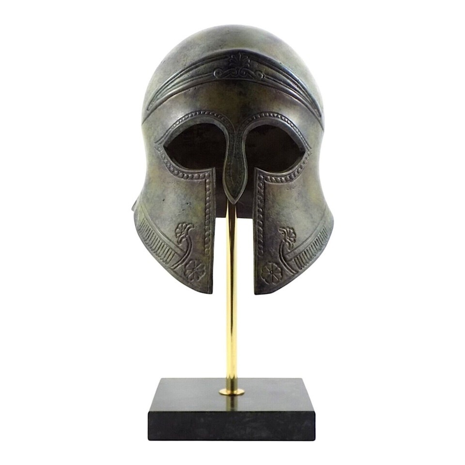 Dieser atemberaubende korinthische Helm ist aus 100 % echter hochwertiger Bronze gefertigt und bietet außergewohnliche Qualitat und Authentizitat. Auf einem natürlichen Marmorsockel gefasst, vereint es Kunstfertigkeit und Geschichte in einem massiven, schweren Design. Handgefertigt in Griechenland, dient dieses Stück als markante Erganzung für jede Kollektion und fangt den Geist antiker griechischer Handwerkskunst ein.