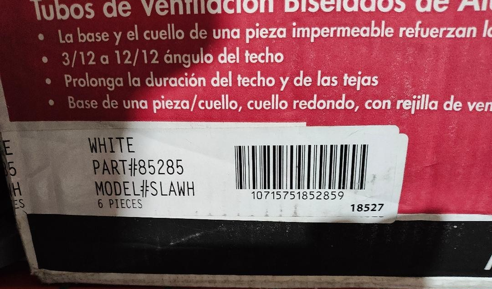 The Slant Back Roof Vent model SLAWH 85285 provides 50 square inches of net free area per unit, ensuring effective attic ventilation by allowing hot, moist air to escape through its 9-inch diameter opening. Constructed from durable, corrosion-resistant aluminum with a clean white finish, this vent features a one-piece, weather-tight design that enhances structural integrity and simplifies installation. Its large flange accommodates roof pitches from 3/12 to 12/12, making it suitable for a wide range of residential roofing applications. Designed for consistent airflow, multiple units should be evenly distributed across the roofline to maintain balanced attic ventilation and improve energy efficiency year-round.