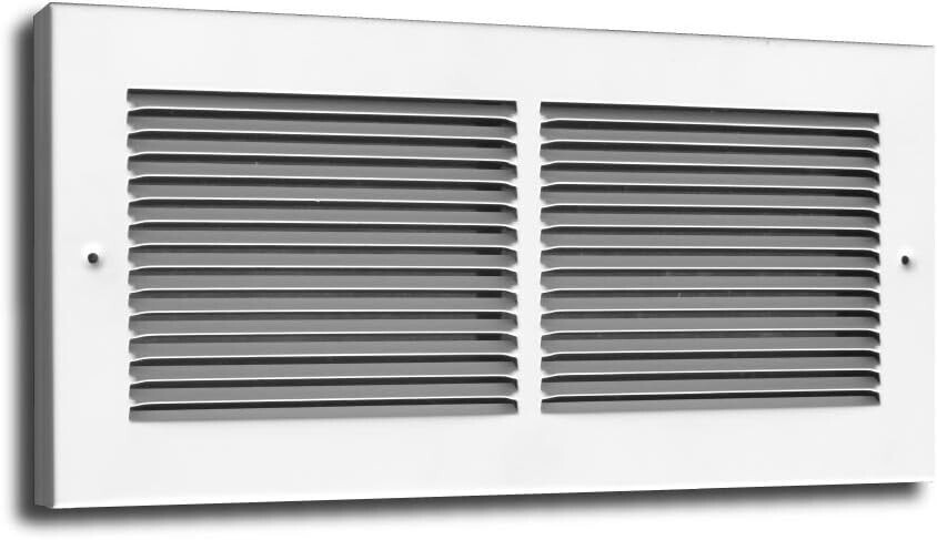 This baseboard register is commonly used by HVAC contractors and DIY renovators installing or replacing return air grilles in residential basements, hallways, and living areas where baseboard duct openings require a low-profile, non-adjustable solution. Its fixed 1-way design ensures predictable airflow return without moving parts, reducing maintenance in systems that prioritize reliability over adjustability. The clean white finish suits modern and traditional interiors alike, making it suitable for new builds, rental property upgrades, or commercial office retrofits seeking uniform, understated ventilation components. Its steel construction and precise dimensions deliver professional results in applications where airflow efficiency and visual neutrality are key.