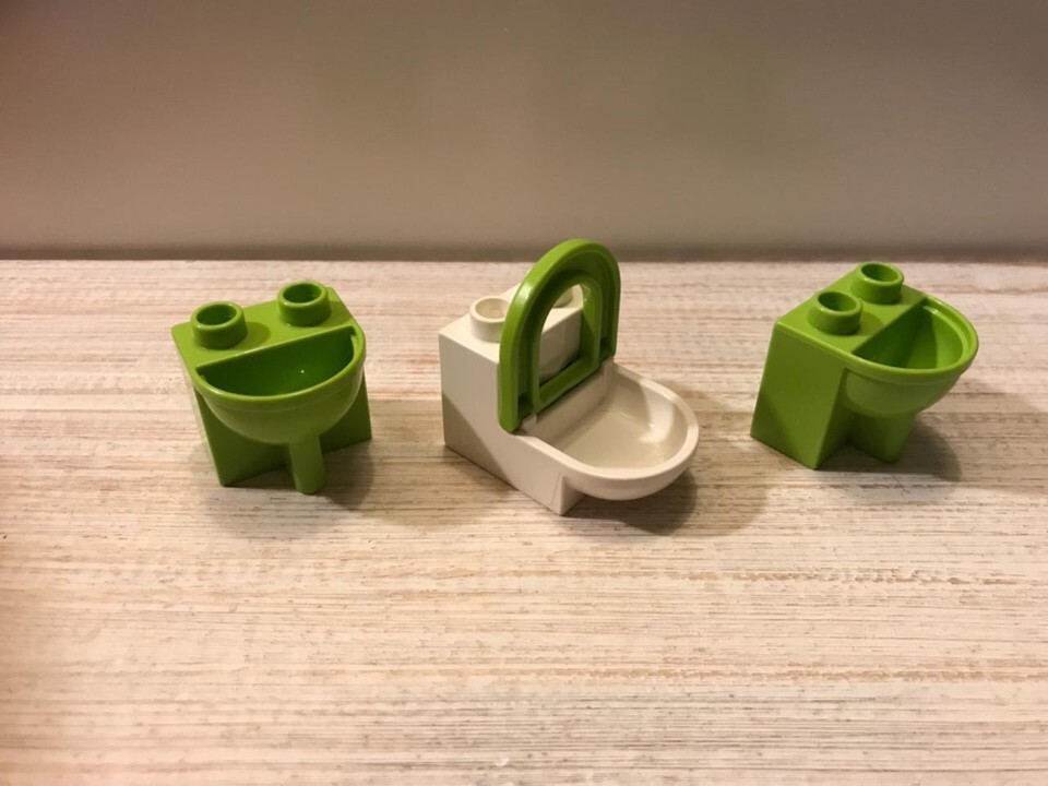 LEGO DUPLO LOT OF 3: 2 SINKS TOILET WITH LIFT UP SEAT. GREEN WHITE