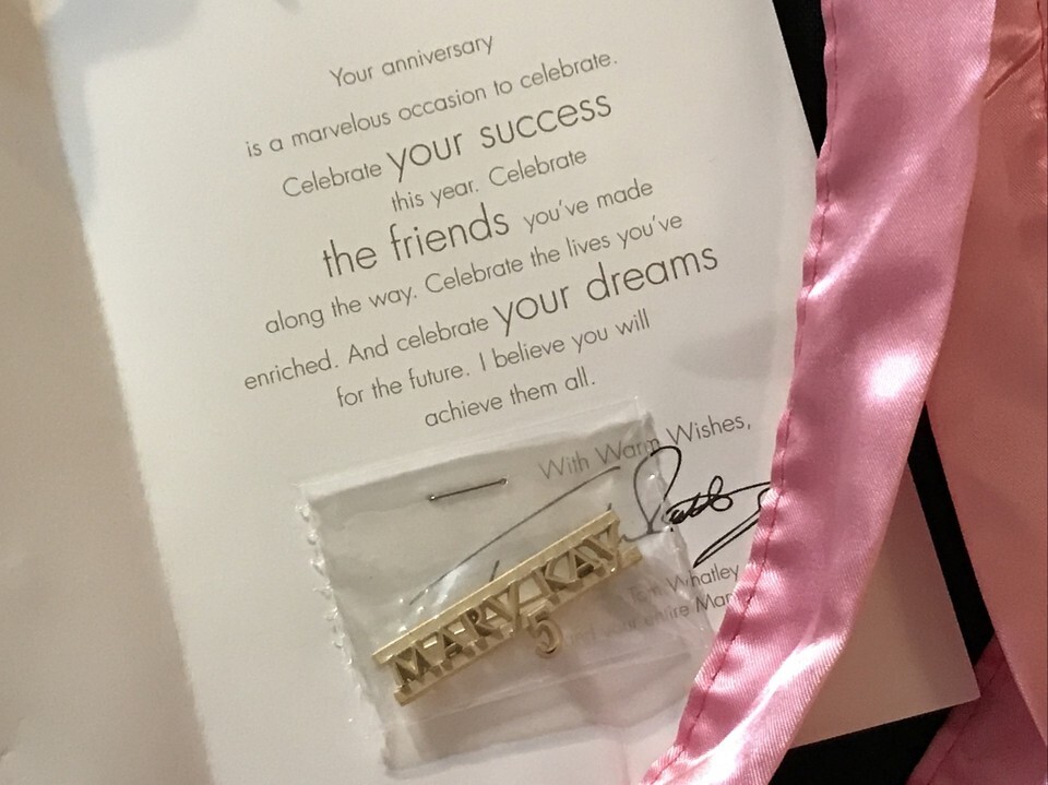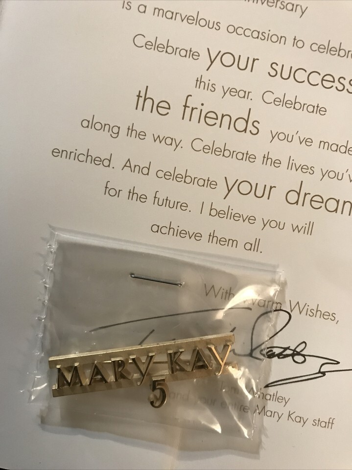 VINTAGE MARY KAY GOLD ENAMEL 5 YEAR ANNIVERSARY PIN TOM WHATLEY SIGNED 1999.