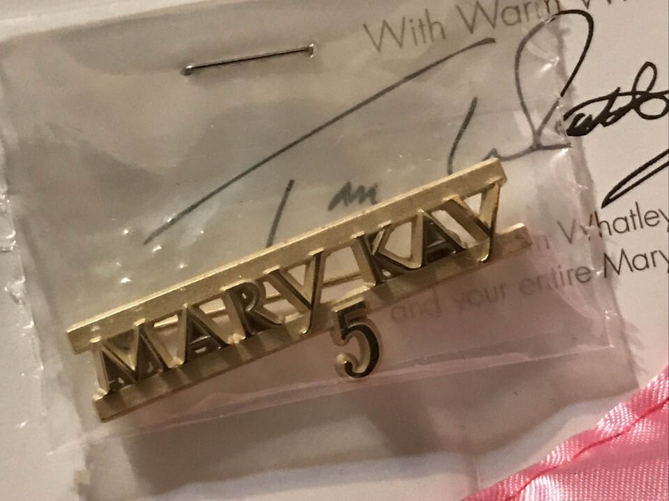VINTAGE MARY KAY GOLD ENAMEL 5 YEAR ANNIVERSARY PIN TOM WHATLEY SIGNED 1999