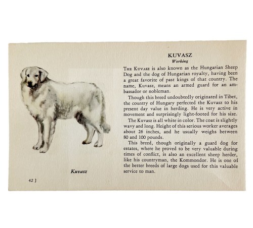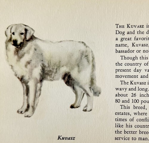 Kuvasz 1939 Dog Breed Art Ole Larsen Color Plate Print Hungarian Sheep PCBG18