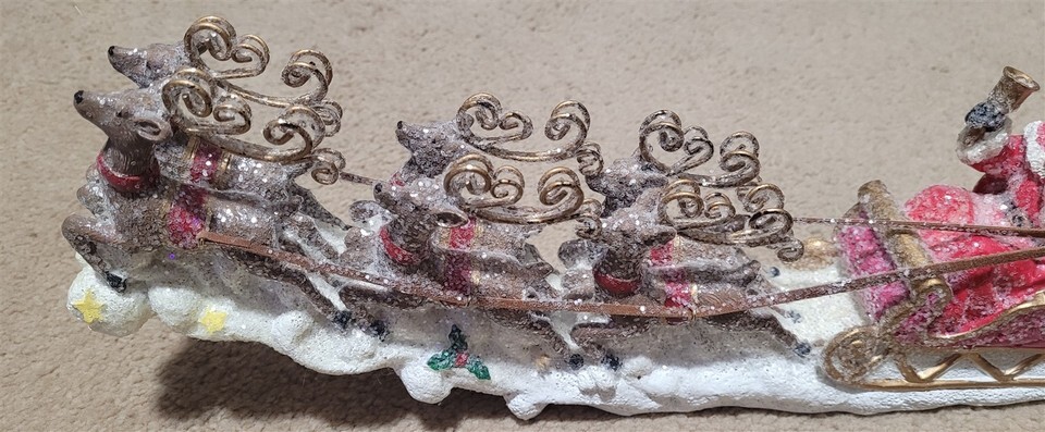 Santa Sleigh & Reindeer Resin Figure 14" tabletop Christmas Decoration