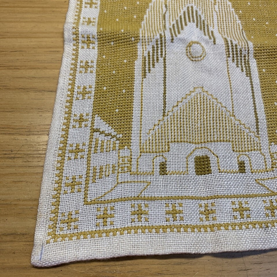 Vintage Antique Completed Finished Cross Stitch Church 14 X 10 Unframed KG