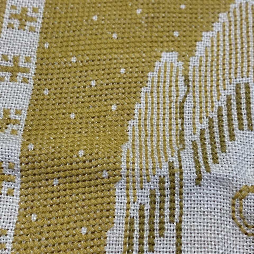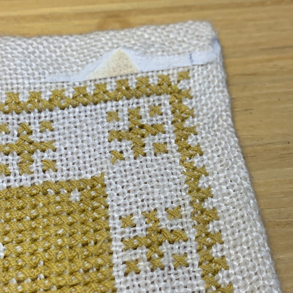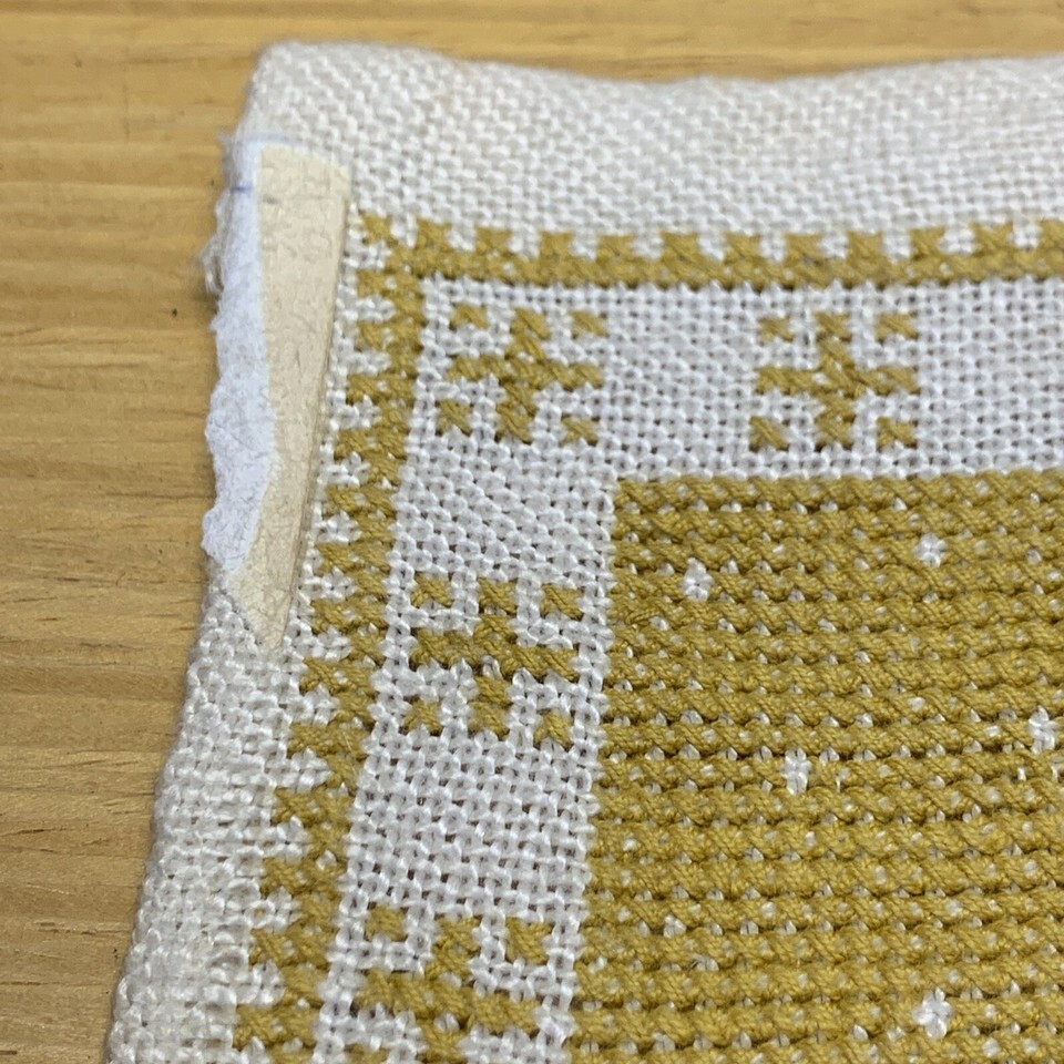 Unframed. Some fraying in the corners and edges. Masking tape stuck to two of the corners. Very neat back. Needs a good ironing. Measures approximately 14 X 10. Please see pictures for details.