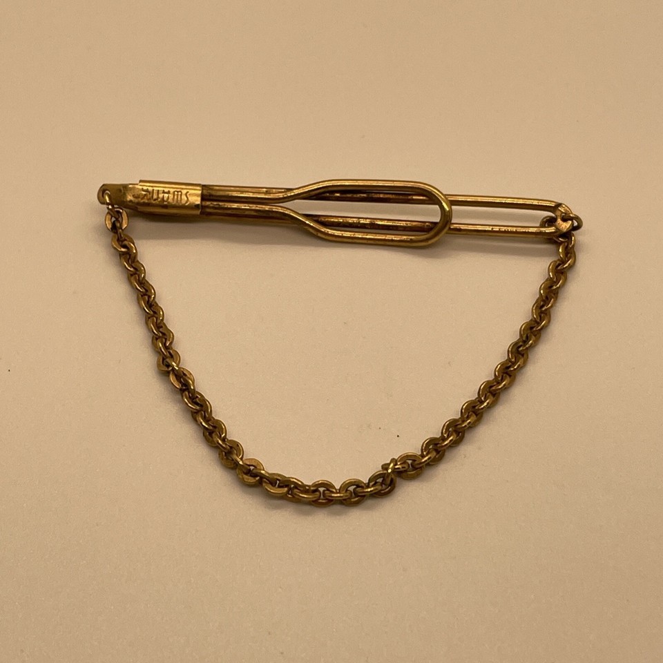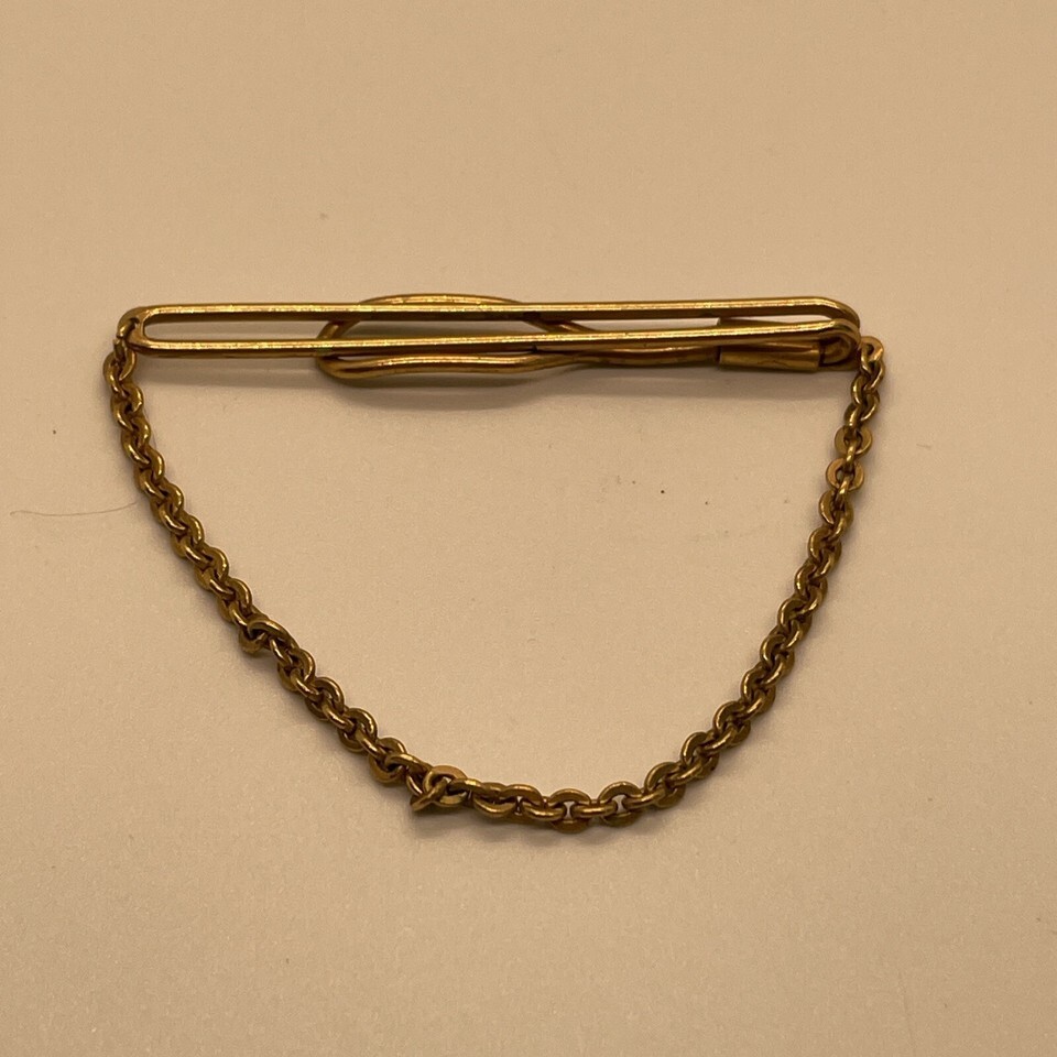 Vintage Swank Gold Tone Tie Clip Bar with Chain Fashion Jewelry KG