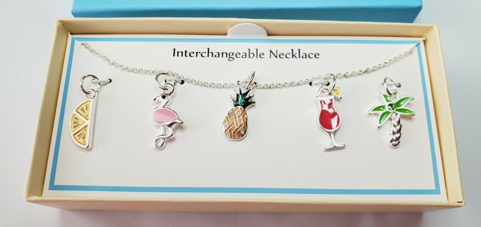 Bay Studio Interchangeable Necklace W 5 Pendants Flamingo Palm Drink Pineapple