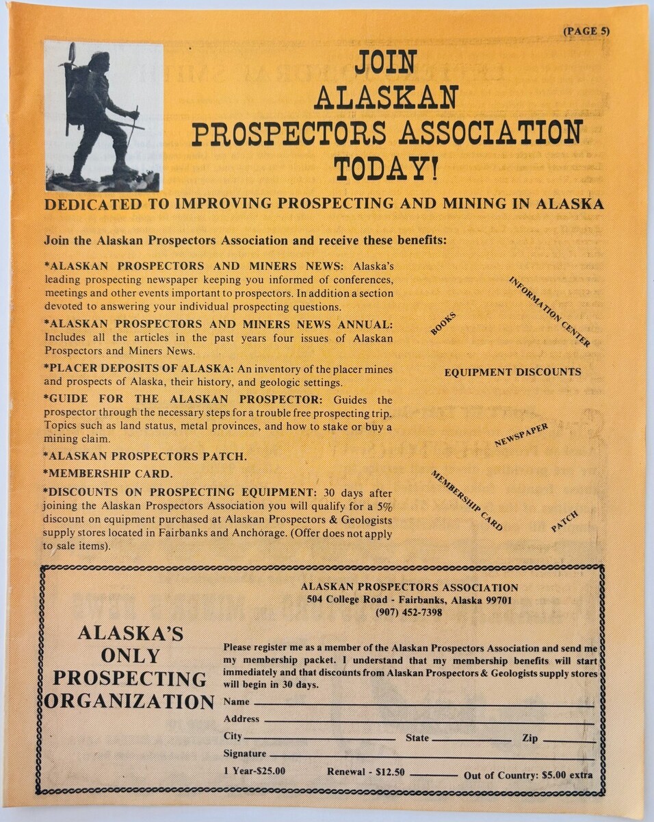 From Alaskan Prospectors And Mining News magazine issue 1983