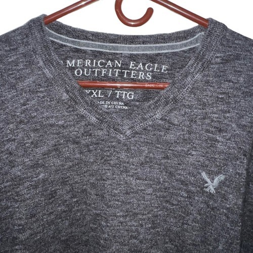 AMERICAN EAGLE OUTFITTERS Men's Charcoal V-Neck Athletic-Fit Cotton Sweater XXL added to cart.