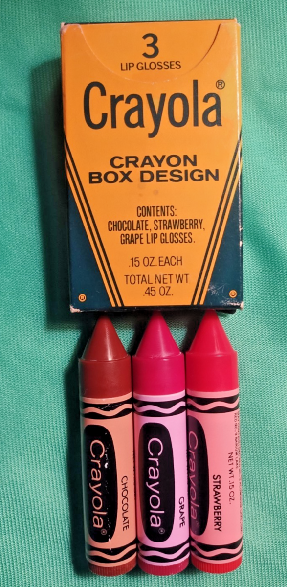 Avon Crayola Crayon 3 Lip Glosses Balm Vintage 1980 Chocolate Strawberry Grape