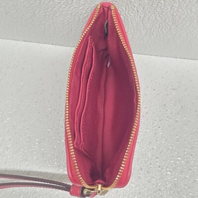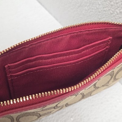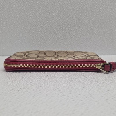 Coach Signature Corner Zip Wristlet Khaki Strawberry Wallet F58033. Images show actual item that will ship.