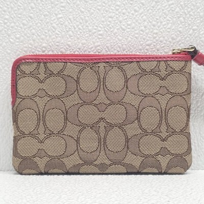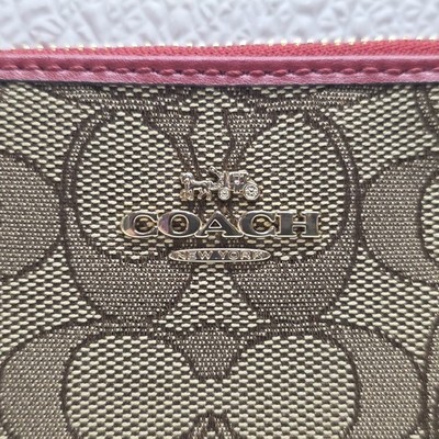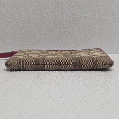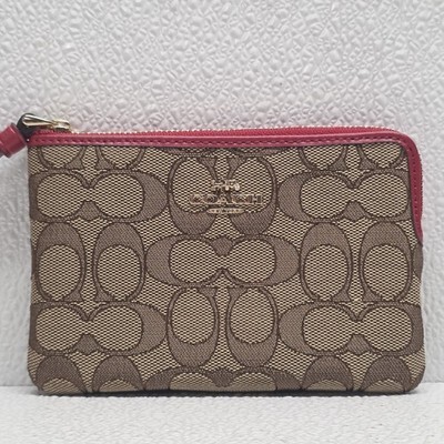 Coach Signature Corner Zip Wristlet Khaki Strawberry Wallet F58033
