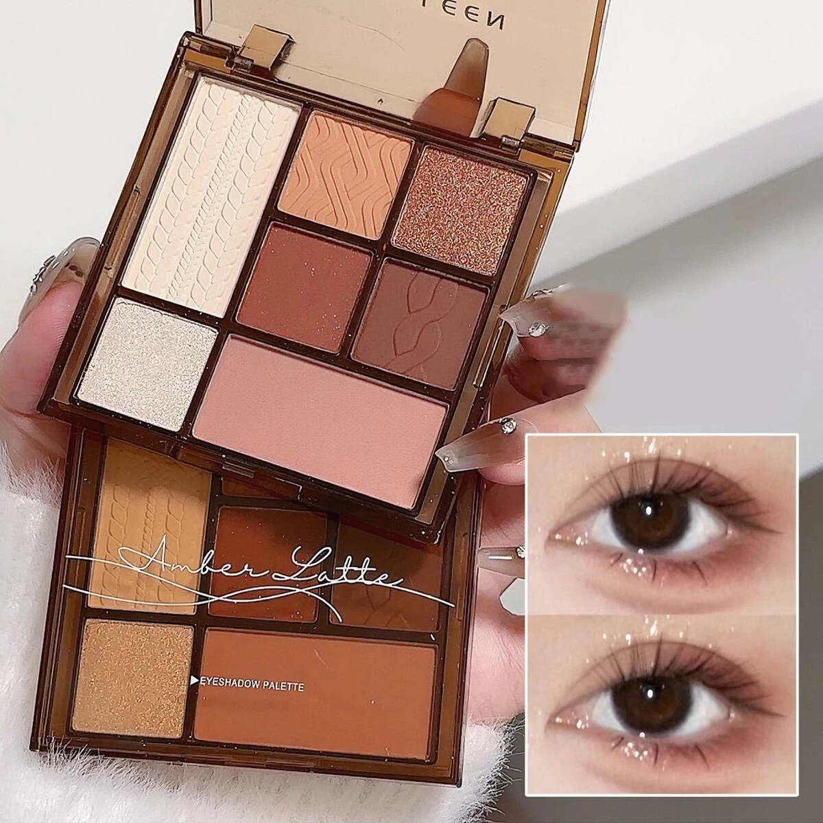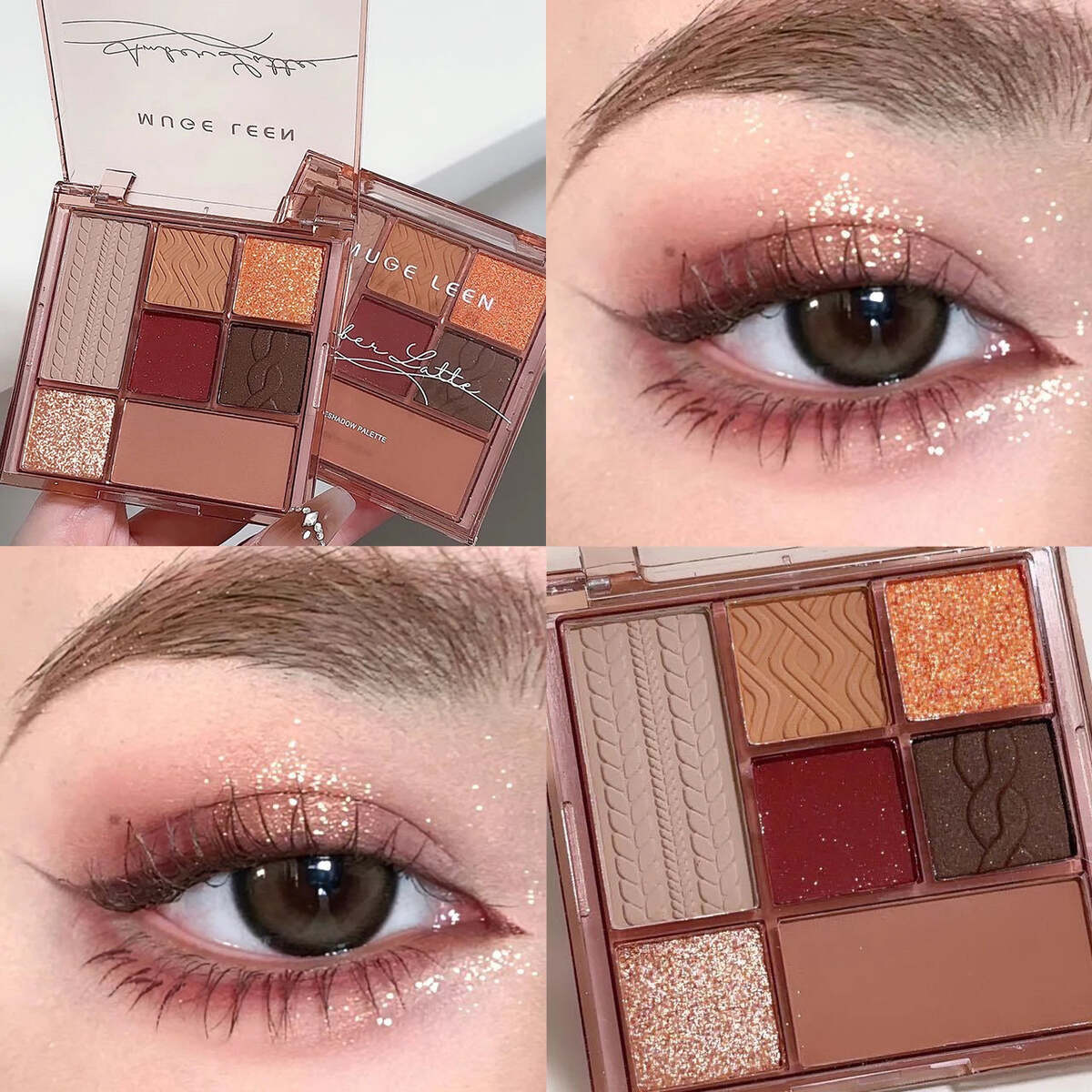 7 Colors Rose Red Brown Eye Shadow Palette Matte Glitter Pearly Eyeshadow Palett