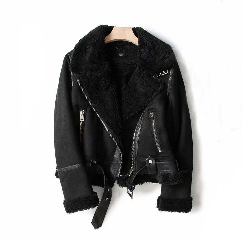 WInter Lapel Jacket Suede Lamb Wool Warm Coat Motorcycle Clothing Women Outwears