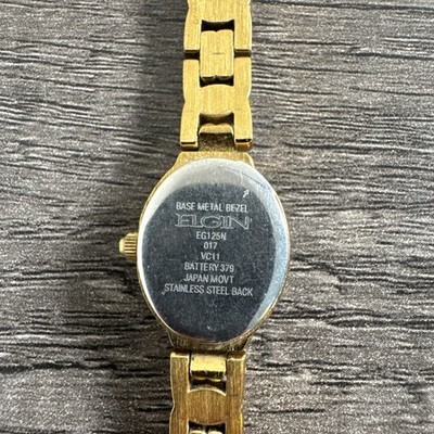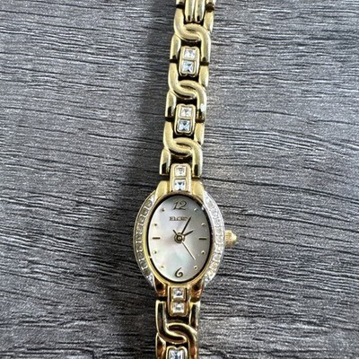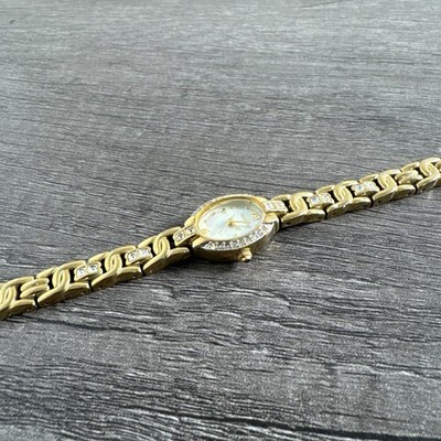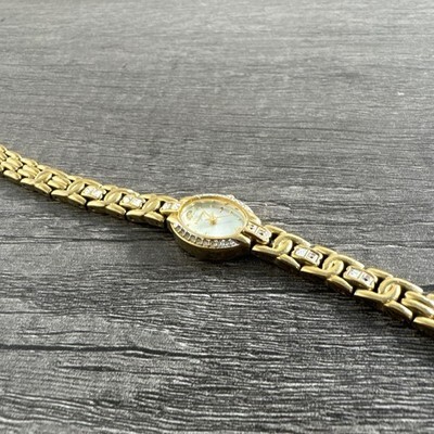 Elgin Women EG125N Dress Pave Gold Tone Oval Quartz Analog 17mm Watch 6 3/4"