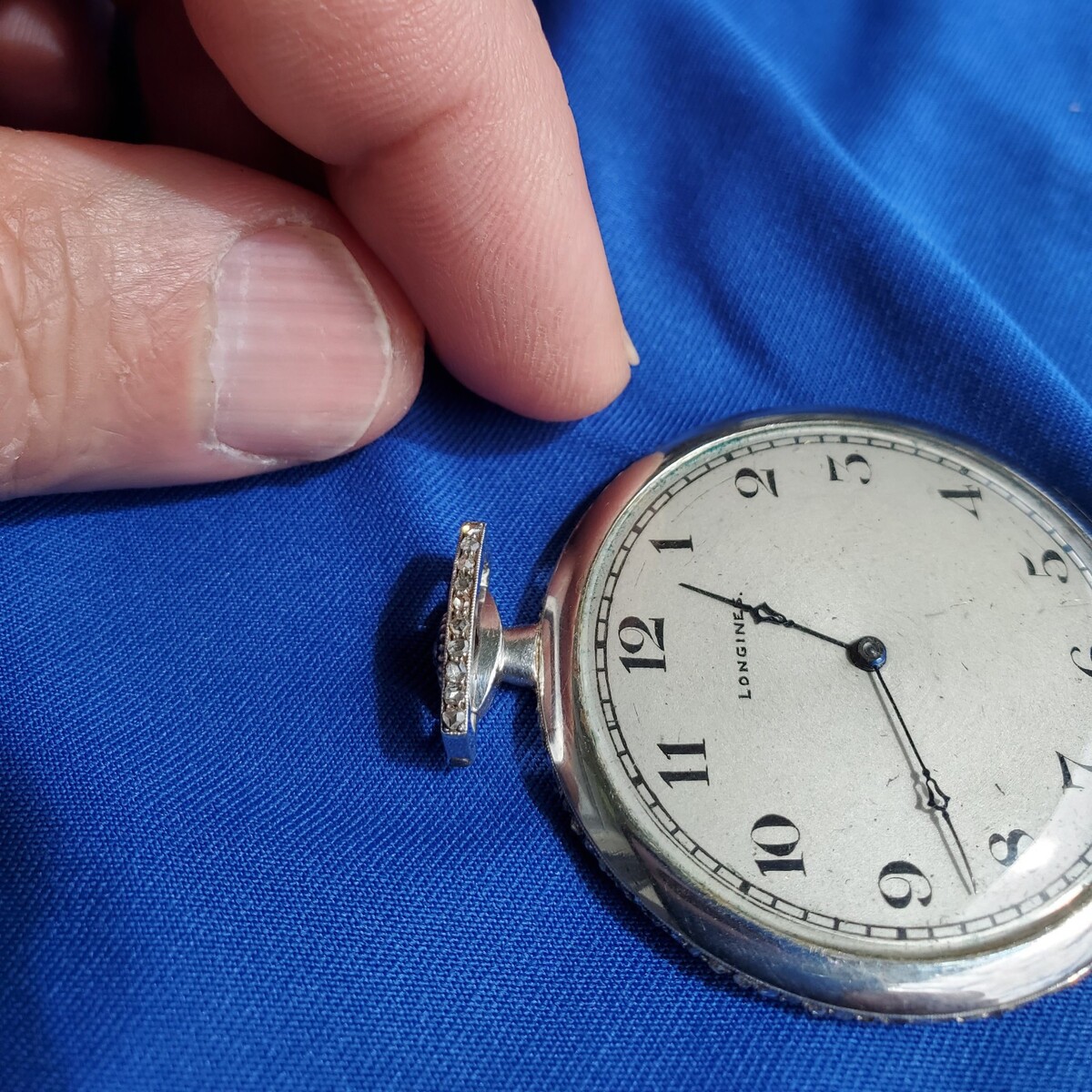 RARE FIND MAGNIFICENT LONGINES PLATINUM DIAMOND POCKET WATCH 43 MM 48 GRAMS