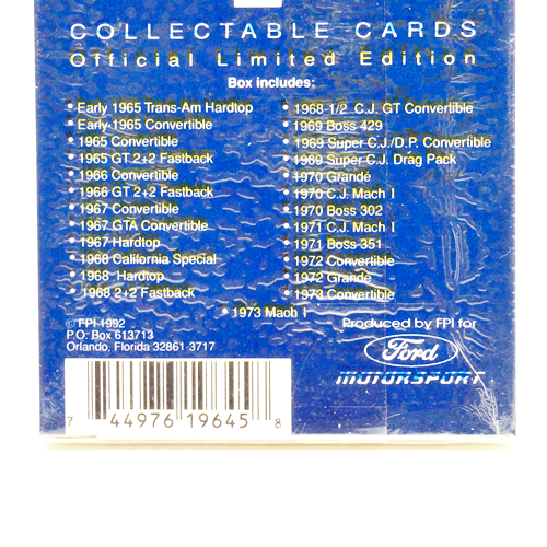 1992 Mustang Collectible Cards Limited Edition 25 Classic Mustangs Cards Sealed