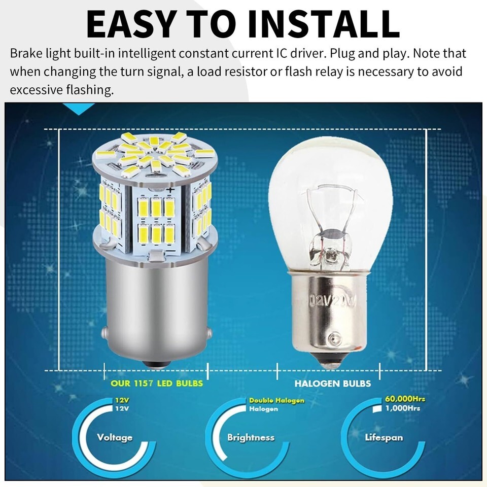 Nowkont 2-Pack LED Turn Brake Lights 12V White #1157 Universal Waterproof
