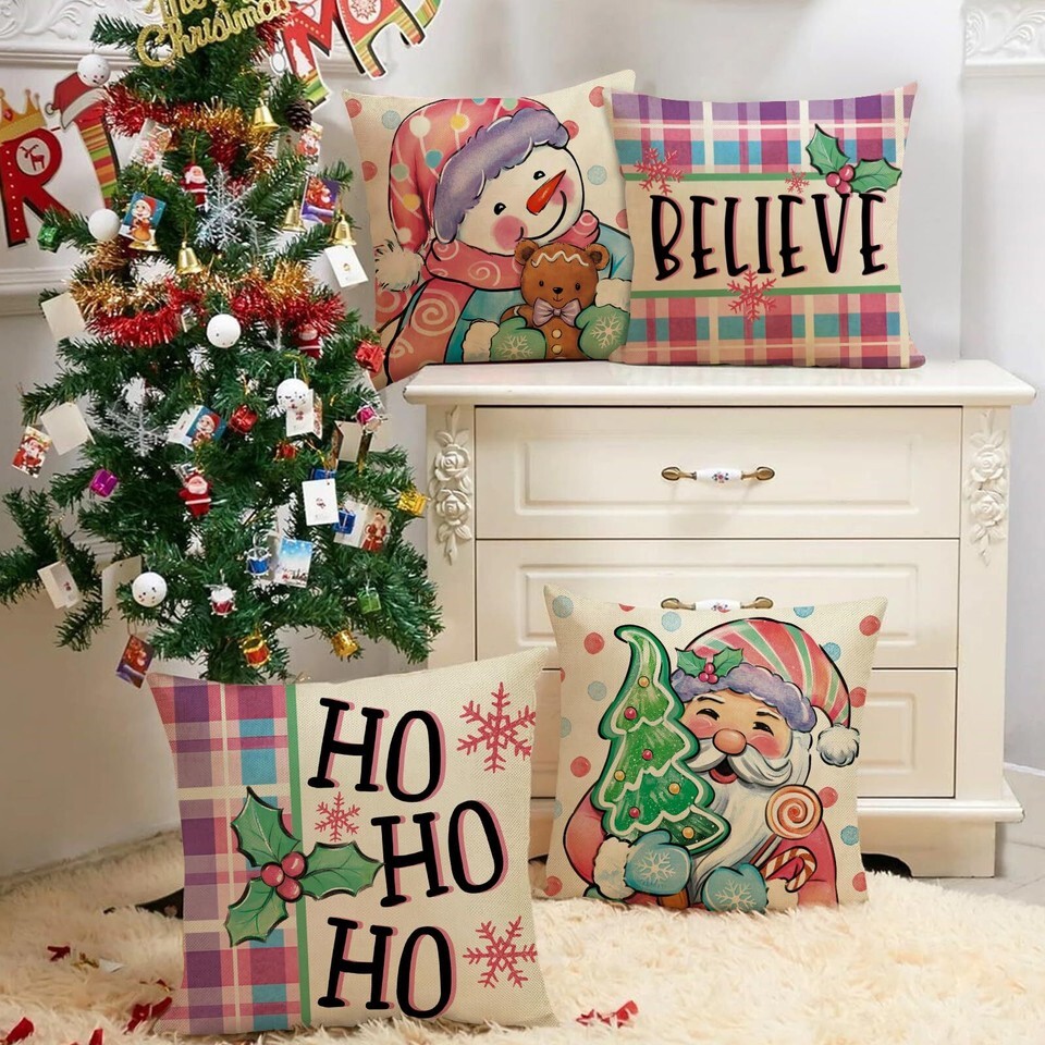 Special Pattern: Comes with 4 packs, these 16 x 16 inches holiday decoration seasonal decorative pillow covers are single-sided printed with cute patterns. The pillowcases are printed with snow man, Santa, Christmas tree, bear, tartan checker, polka dots, holly berry patterns. Besides, our pillow covers have words like hohoho, believe