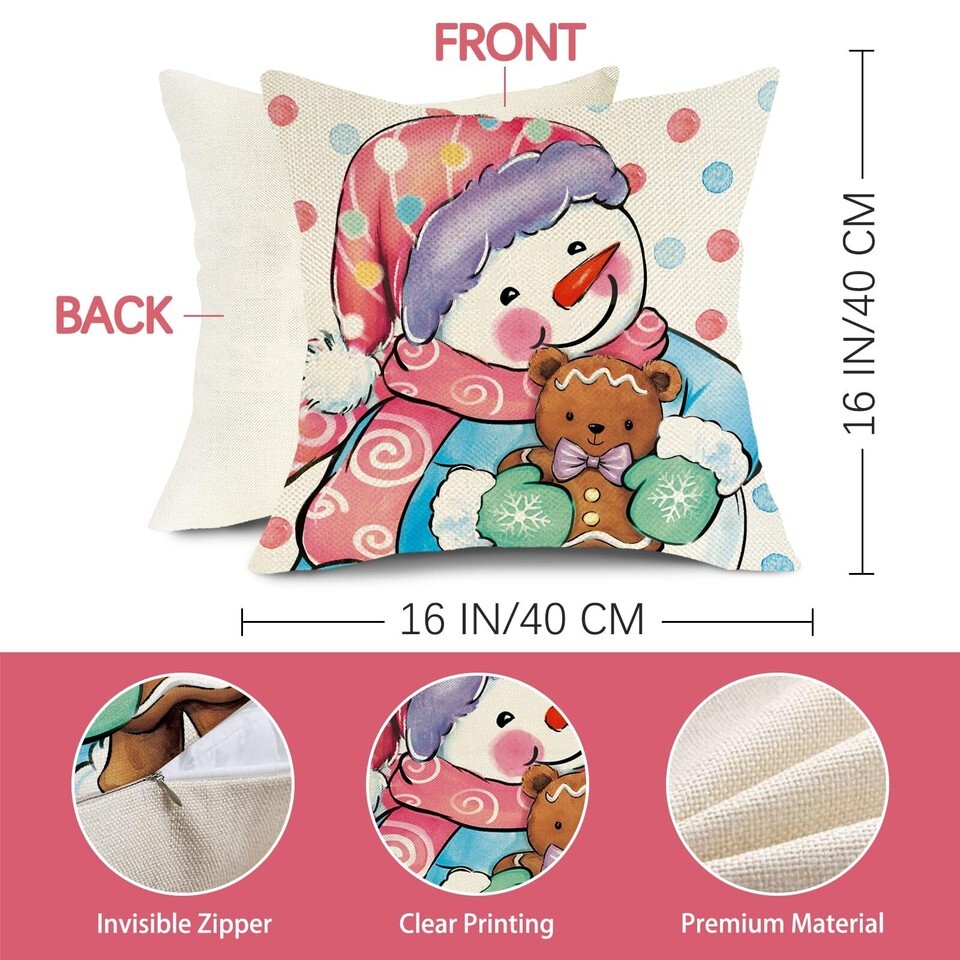 Fjfz Set of 4 Christmas Snowman Santa Pillow Covers 16x16 Plaid Polka Dot