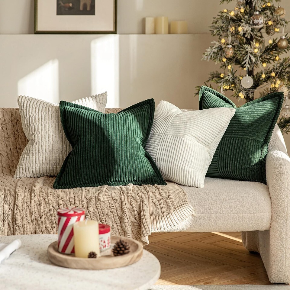 EMEMA Corduroy Boho Throw Pillow Covers 16x16 Olive Green Pack of 2