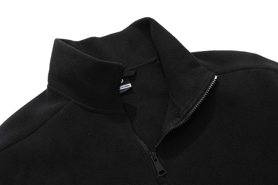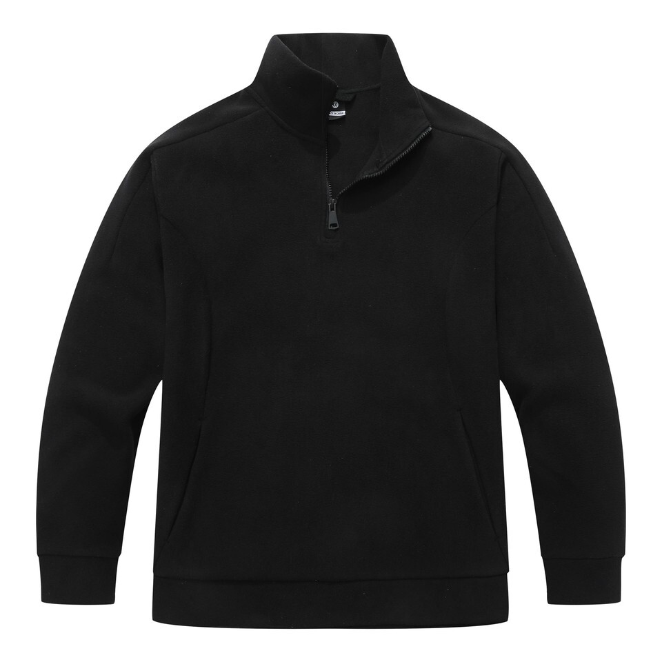 KAIDER Women's Plus Size Polar Fleece Pullover Jacket Black Quarter-Zip Long