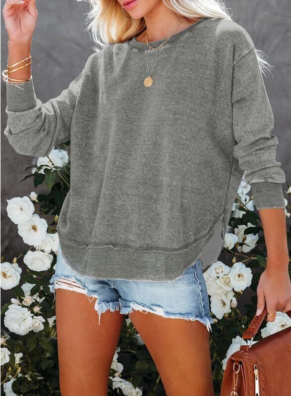 One unique feature of our sweatshirt is the side split and irregular curved hem, adding a touch of flair to your outfit. The exposed seam detail adds a chic and fashionable look.
