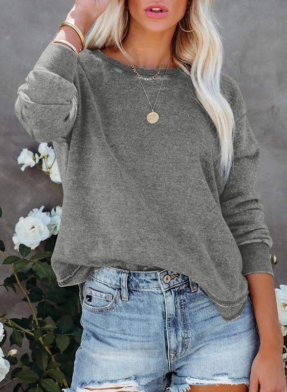 SHEWIN Womens Sweatshirt Lightweight Loose Fit Crewneck Long Sleeve M Gray