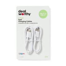 Charge your devices quickly with the 3' USB-C to USB-C 2pk Cable - dealworthy? in White. These cables feature a male-to-male connection, ensuring flexibility for convenient charging and syncing of your devices. Backed by a 1-year limited warranty, this pack of 2 cables from dealworthy? makes it the ideal choice for all your charging requirements. dealworthy?: Just what you need, priced just right.