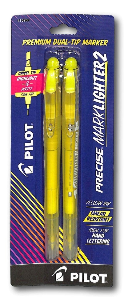 Pilot Precise Marklighter2 Dual Tip Highlighter Yellow 2pk 1.3mm