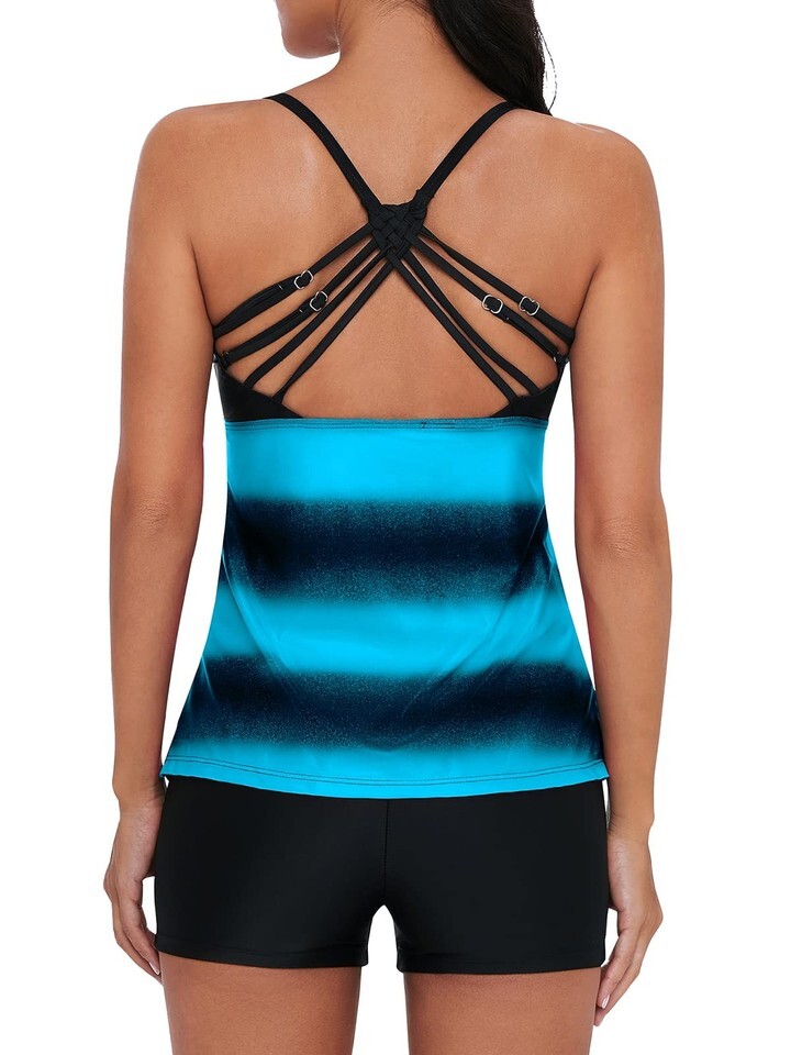 Feature: Padded bra without underwire, adjustable straps, tankini swimsuit with boyshorts. Spaghetti strap, retro floral printed, sling design, sporty style, very chic and flattering. High elasticity perfect fit.