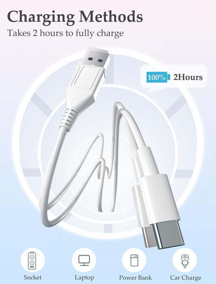 2 Speed wind speedDesigned with a non-folding handle, a common design flaw in most folding portable fans. The handheld fan has 2 adjustable,Fully charged in 3 hours, it can work continuously for 6-12 hours.
