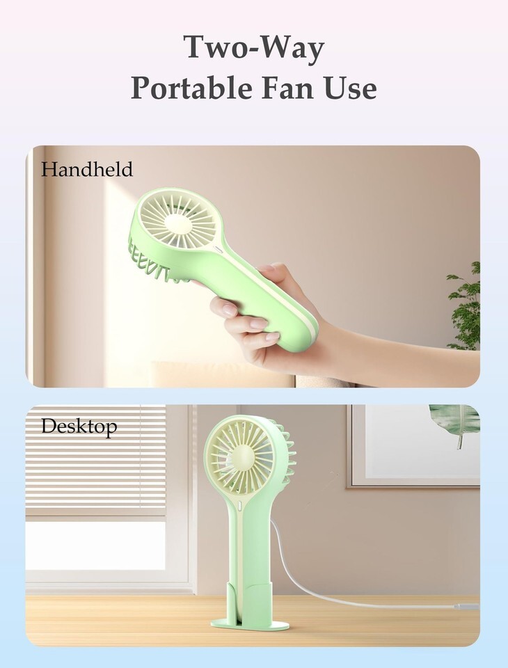 Both handheld and hands-freeThe personal handheld fan base is easily detachable and can be used either as a handy outdoor handheld fan or as a stable, hands-free indoor desktop fan on your desk. It can also be transformed into a regular desk fan or eyelash fan.