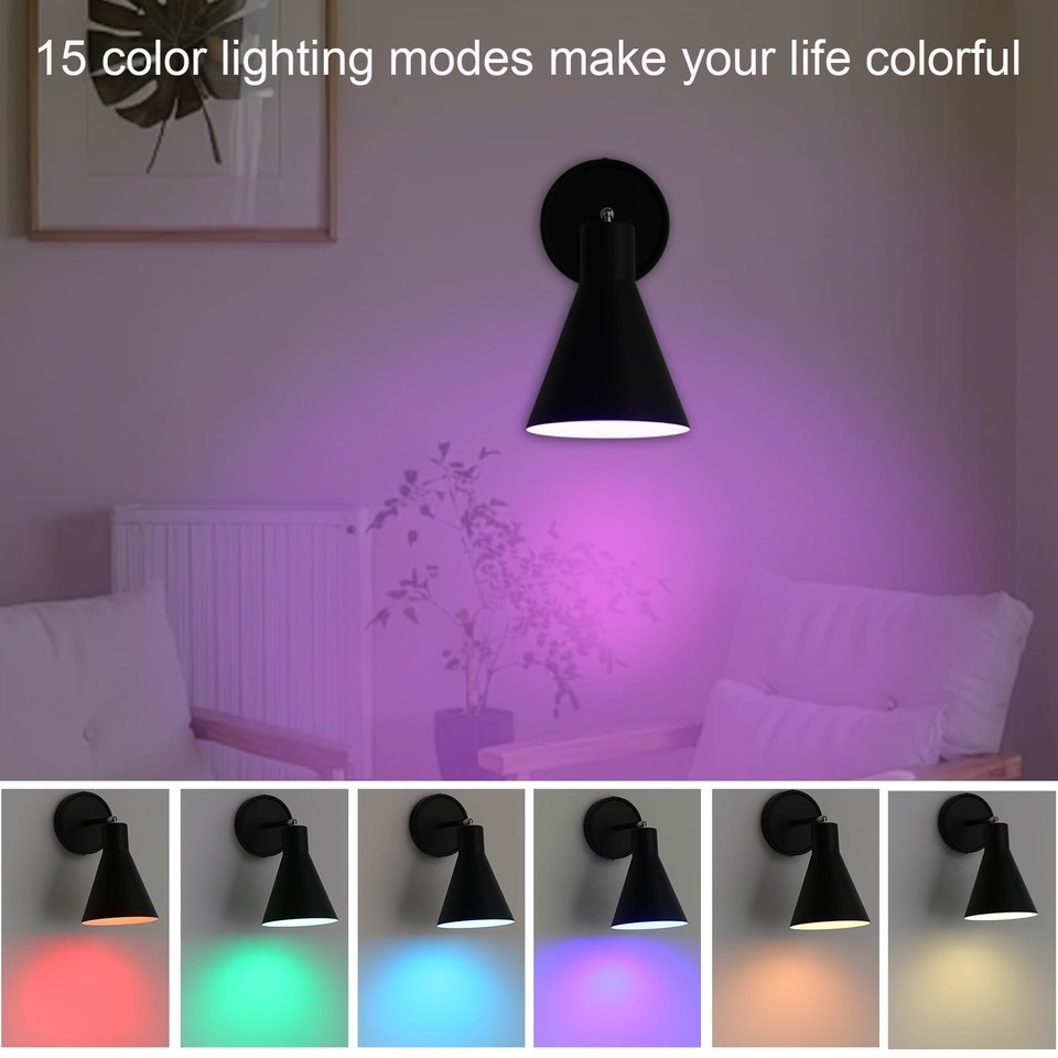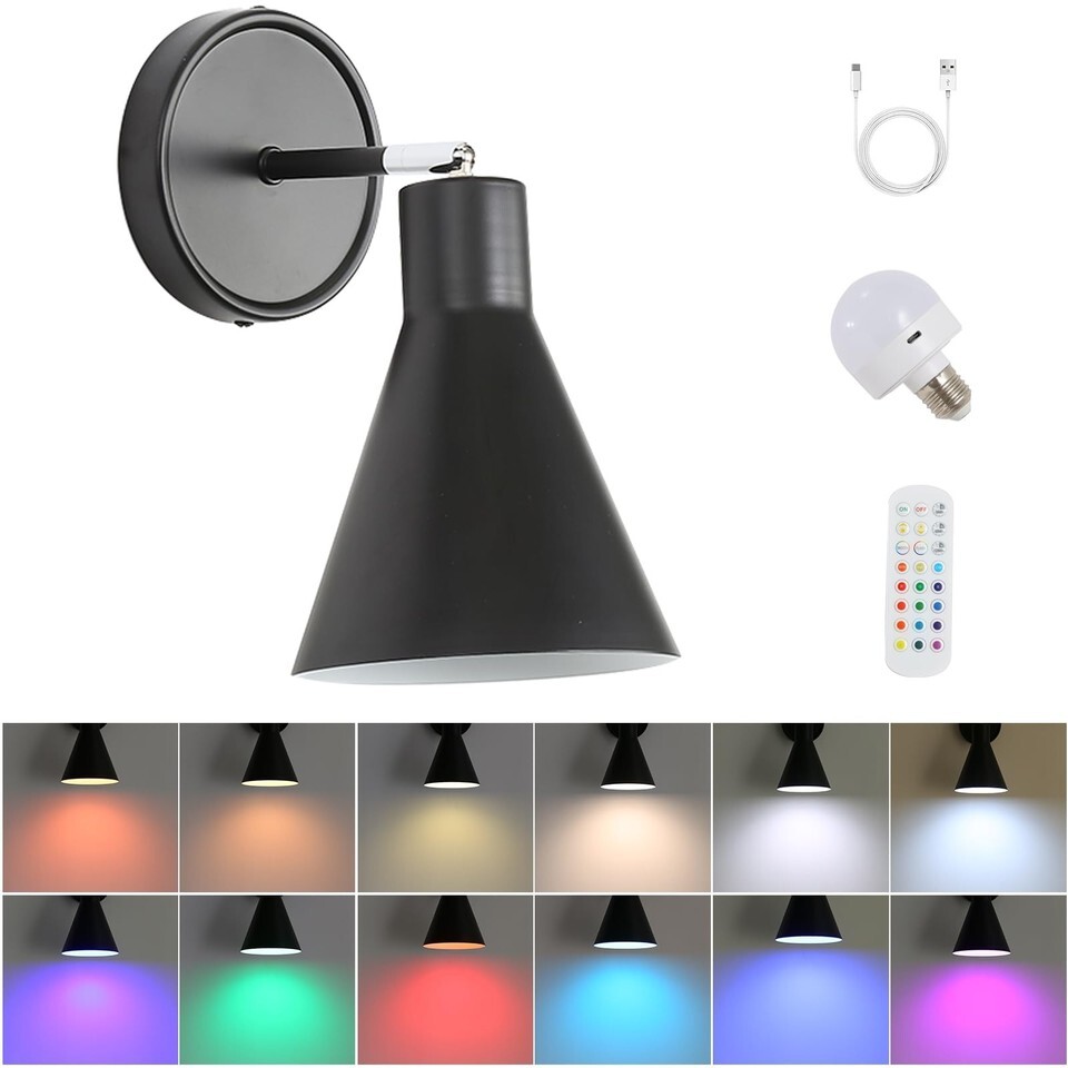 FILIMITIY Battery Operated Modern Dimmable LED RGB Wall Sconce Black
