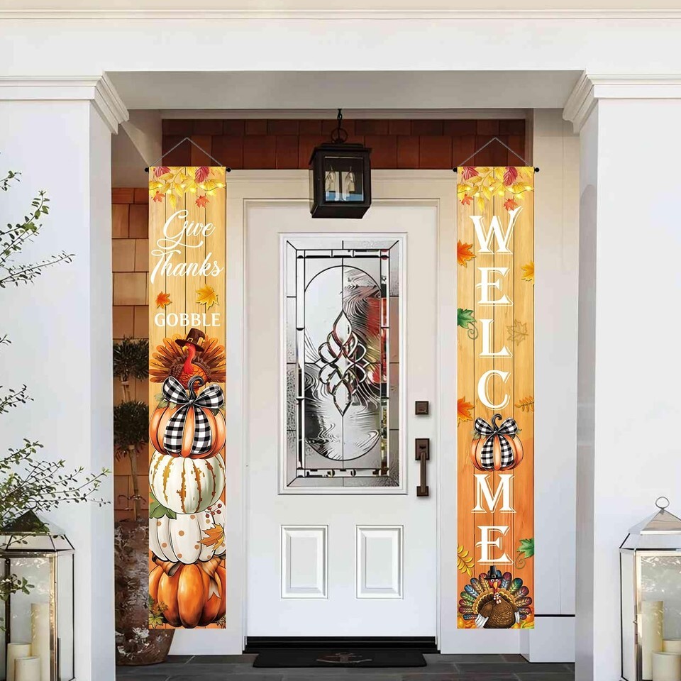 Vintage Welcome Thanksgiving Porch Banner Sign 70.8x11.8in Pumpkin Turkey Decor