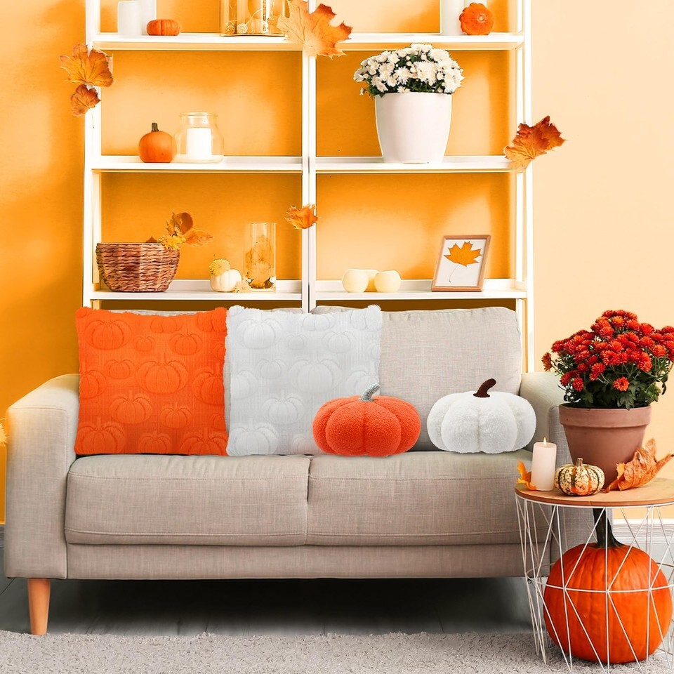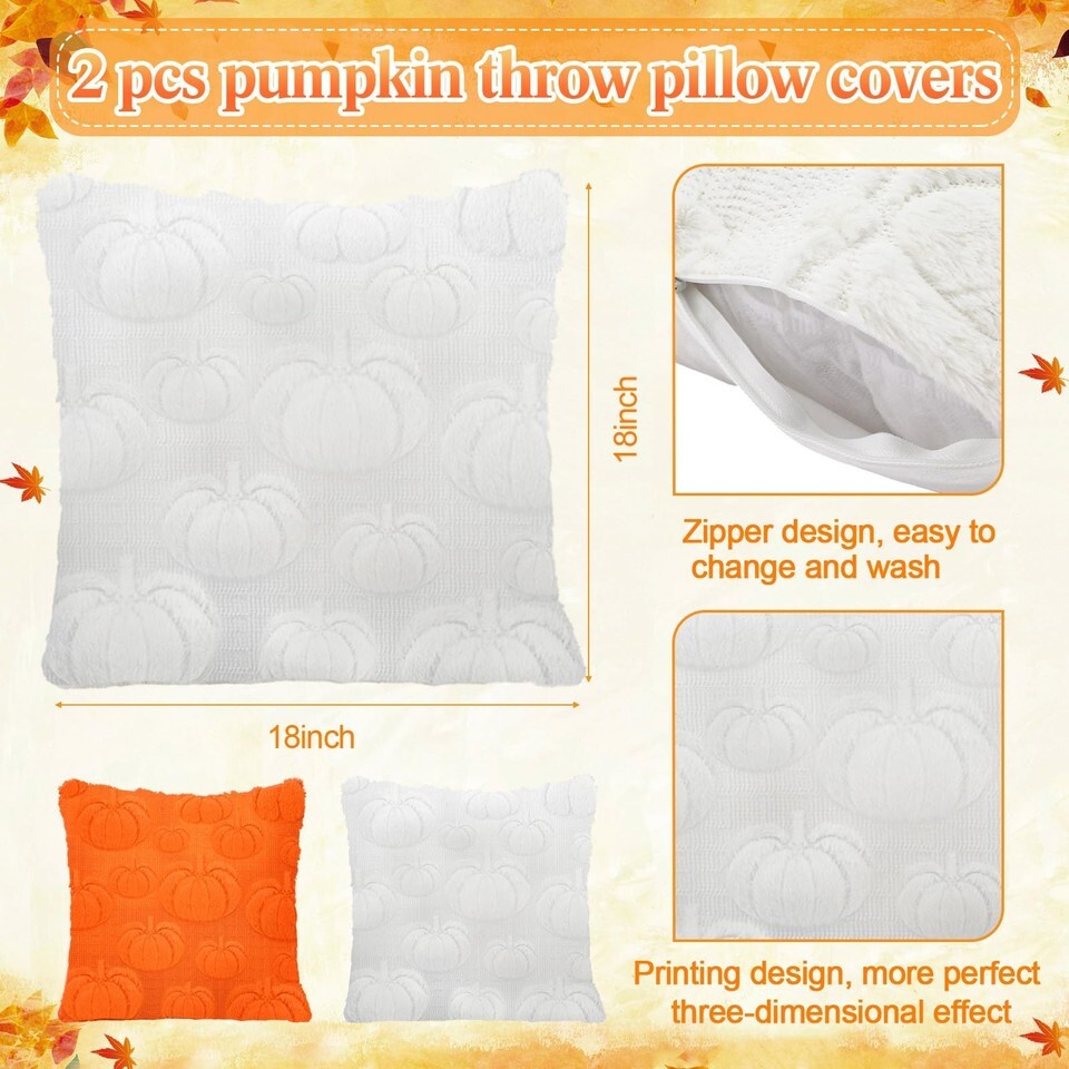Pillow and Pillowcase Set: you will receive 2 pieces 3D pumpkin shaped throw pillows, measuring about 12 inches and 2 pieces pillow covers, measuring about 18 x 18 inches; This set of pillows and pillowcases provides a beautiful holiday decoration