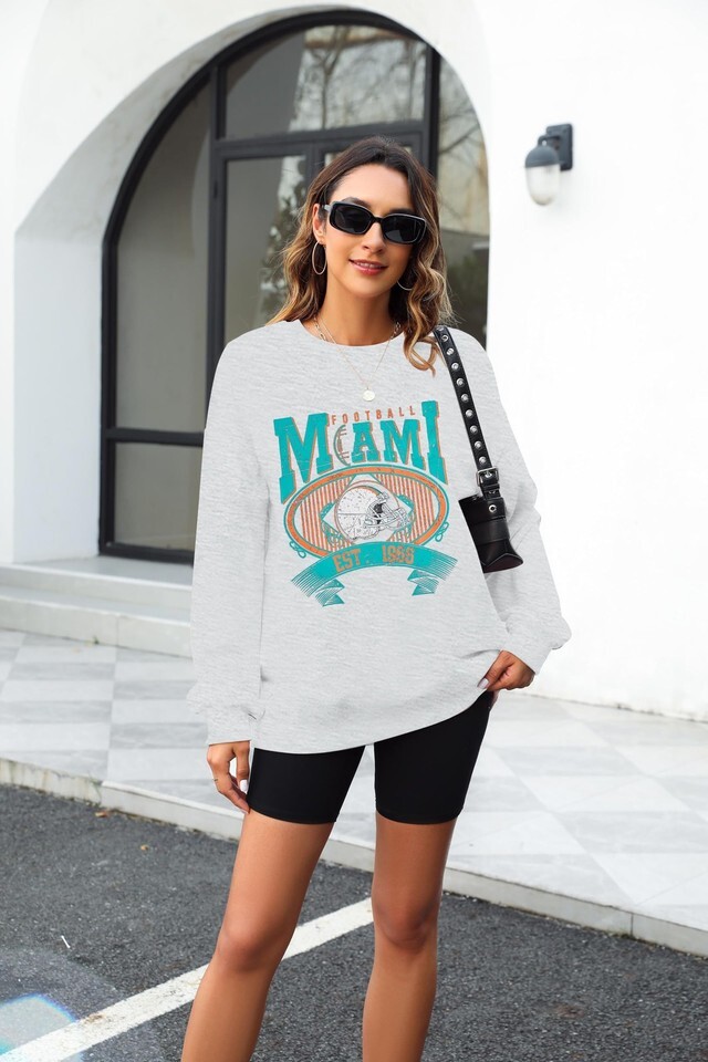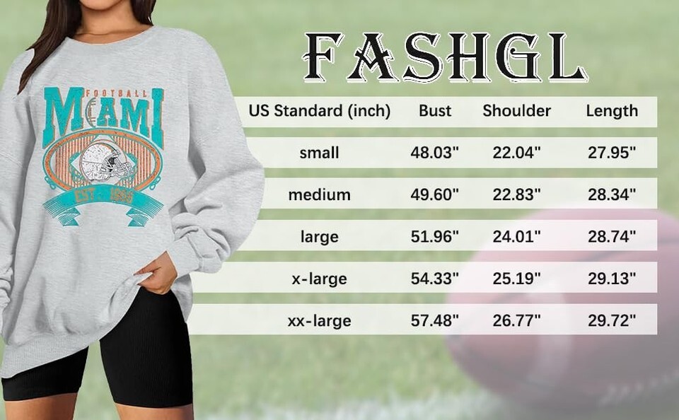 FASHGL Miami Football Sweatshirt Women Oversize Long Sleeve Light Grey XXL